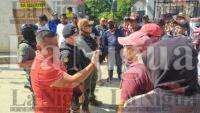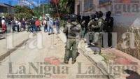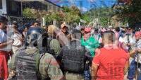 Una vez fuera los funcionarios, la fuerza pública tomó distancia y los manifestantes continuaron con sus exigencias de Justicia por la libertad de Higinio Bustos.