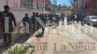Tantoyuca, Ver.- Alrededor de las 14:30 horas elementos de la fuerza civil y policia estatal llegaron como apoyo provenientes de varias delegaciones de la secretaria de seguridad pública, el primer Objetivo era de liberar a cuatro funcionarios públicos que estaban retenidos y pedían a los manifestantes del Frente Nacional de la Lucha por el Socialismo, FNLS, que evitaran el uso de la fuerza pública y liberaran a los funcionarios retenidos para que pudieran dejarlos con la manifestación como lo marca la constitución política de los Estado Unidos Mexicanos.