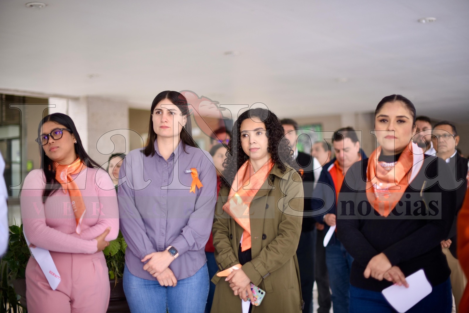 Por su parte, la secretaría de Fiscalización del Congreso local, Alma Leticia Patiño Gabriel, señaló que aún prevalece una deuda urgente e impostergable en materia de erradicación de la violencia contra las mujeres y las niñas, por lo que el Día Naranja es el recuerdo constante de una lucha global que exige compromiso, acción y resultados concretos.