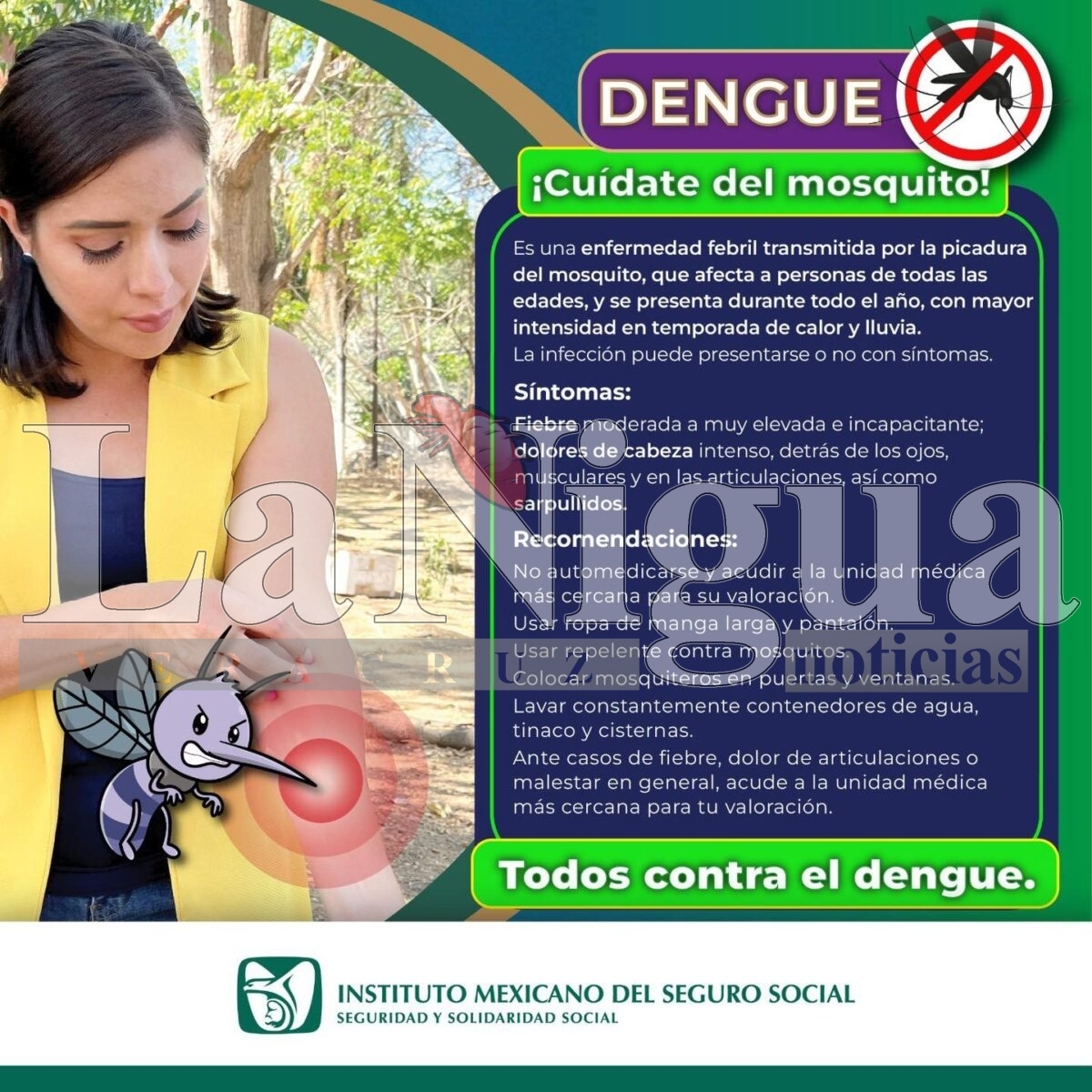 El Instituto Mexicano del Seguro Social (IMSS) en Veracruz Sur informa a la población en general a cerca del dengue, enfermedad viral que se transmite a las personas por la picadura de un mosquito infectado, el Aedes aegypti.