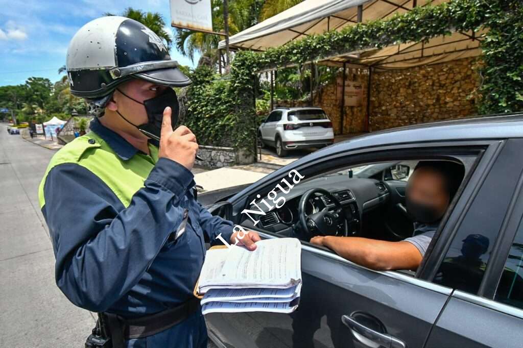 Durante la intervención vehicular el elemento solicita al usuario la licencia, en caso de no portarla se pide la tarjeta de circulación; de no contar con estos documentos, el personal de Tránsito tiene la facultad de proceder con el arrastre del vehículo al corralón municipal y se aplica la multa que se considera grave.