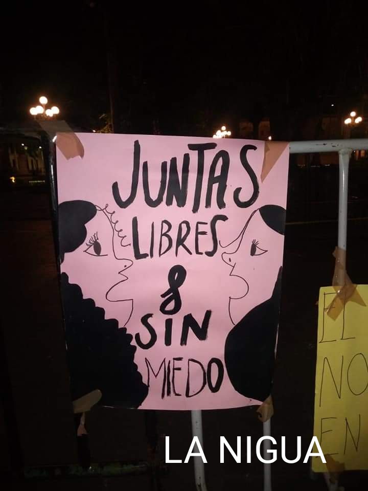 En calles céntricas, en el parque y hasta en las vallas que cierran las calles, mujeres colocaron cartulinas para así hacer viable la situación de violencia que viven hoy dentro de hogar, con texto como: