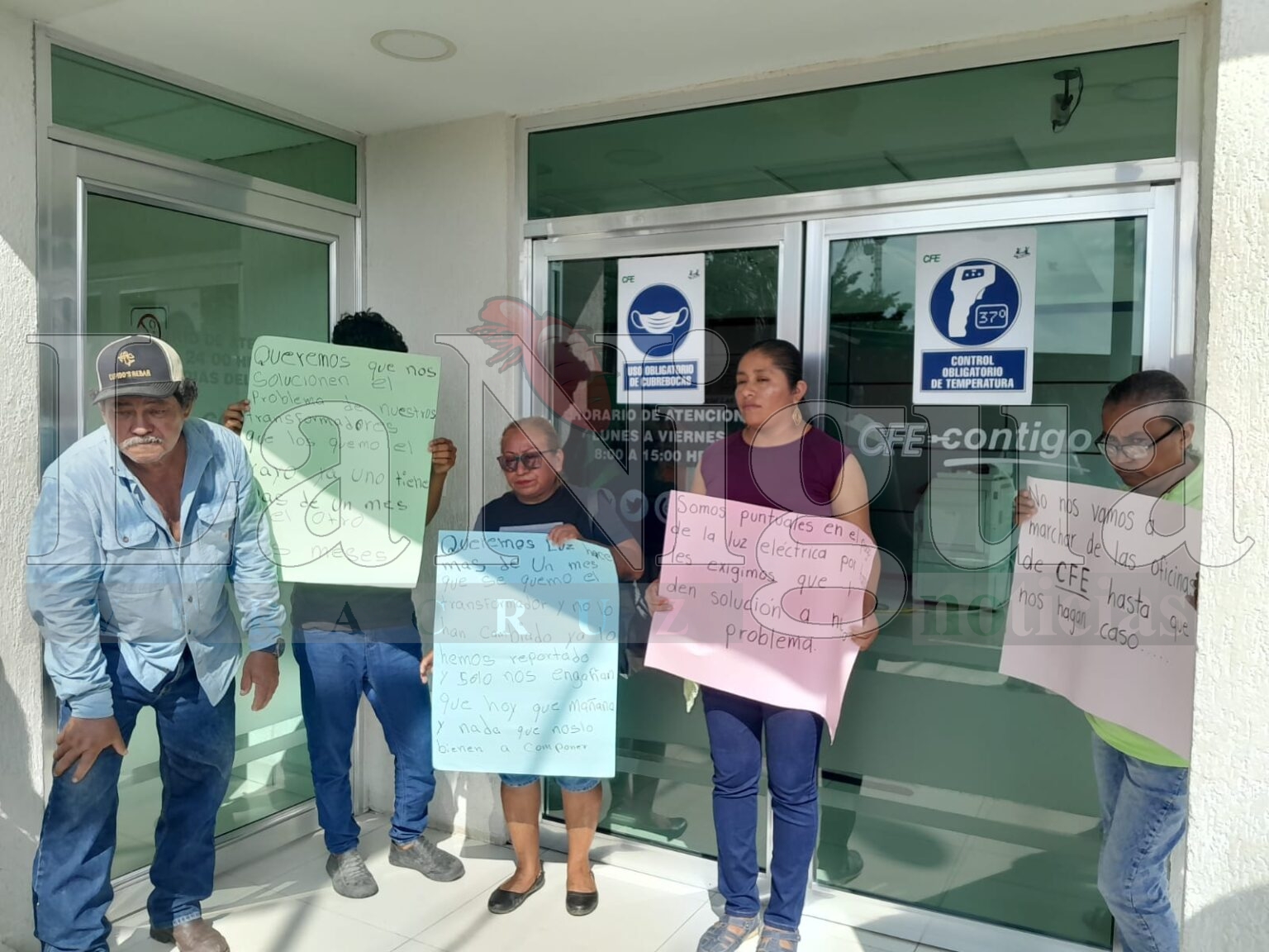 Habitantes de tres comunidades de la zona rural de Las Choapas, tomaron está mañana de lunes las oficinas de la Comisión Federal de Electricidad (CFE), por la falta de energía eléctrica durante dos meses y que ya afectó la economía de muchas familias.