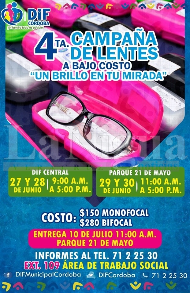 Córdoba, Ver.- El Sistema Municipal para el Desarrollo de la Familia (DIF) hace la invitación a la ciudadanía para que mañana asistan a su 4ta campaña de lentes a bajo costo.
