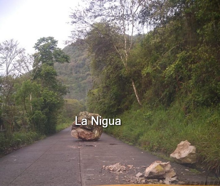El desgaje de la parte de cerro se registró entre las comunidades San Rafael Calería y La Lagunilla, lo que ocasionó que rocas de gran tamaño bloquearan parte de la vía de comunicación.