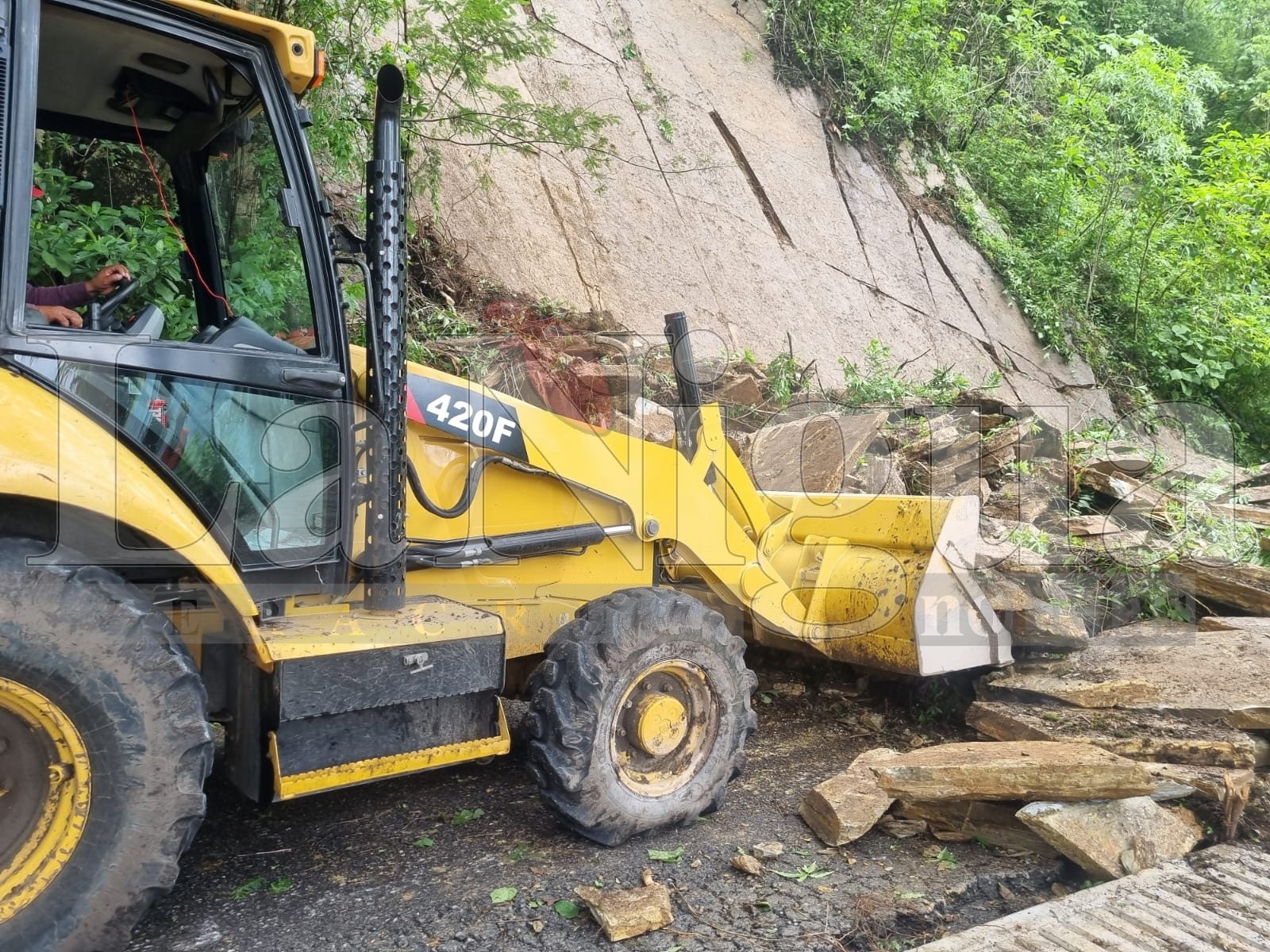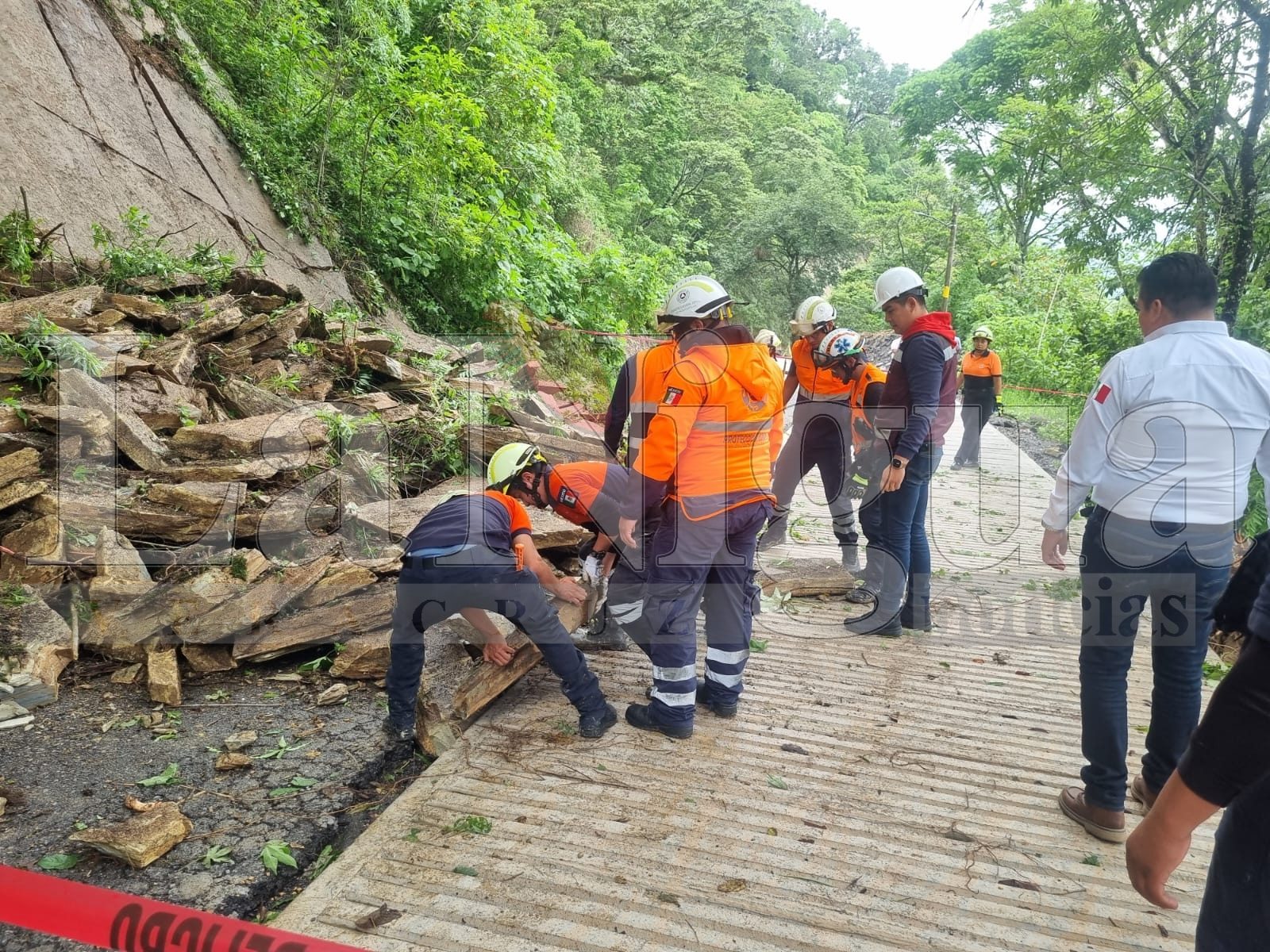 Desde primera hora, personal de Obras Públicas, iniciaron con los trabajos de remoción de piedras y escombros, contando con la participación de elementos de Protección Civil para el abanderamiento de la zona.