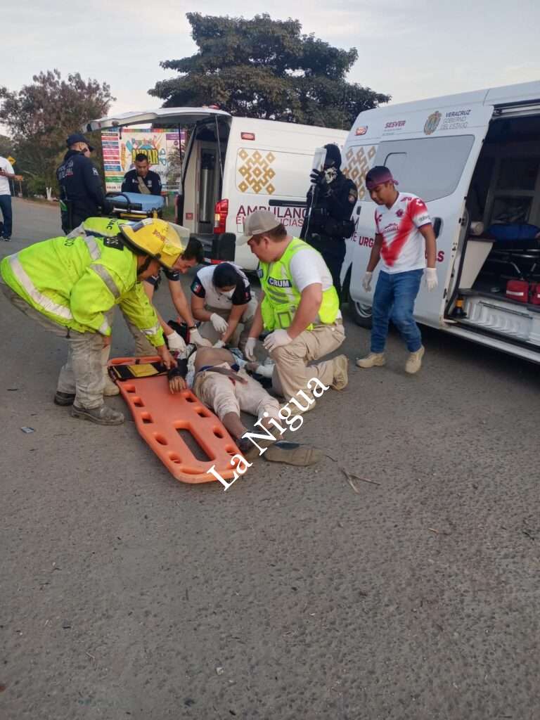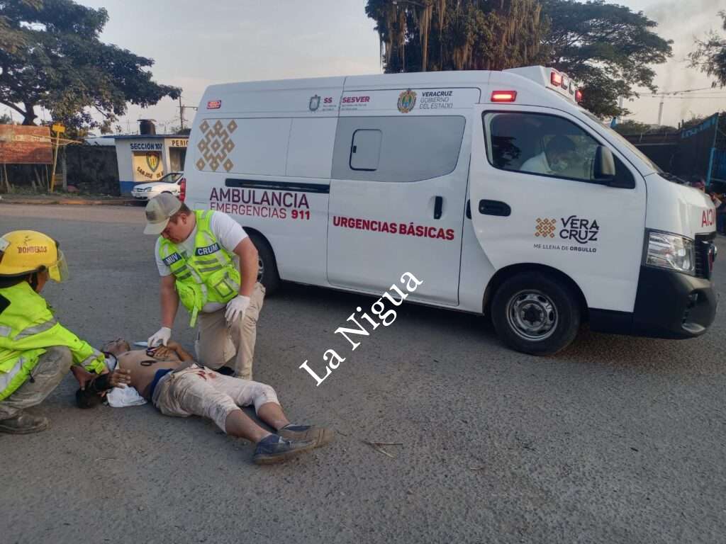 Cuitláhuac, Ver.- Un hombre resultó seriamente lesionado luego de caer de un camión cañero que intentó abordar por la parte trasera, en aparente estado inconveniente, teniendo que ser trasladado de emergencia a un hospital luego de que las llantas del pesado vehículo le pasaran encima.