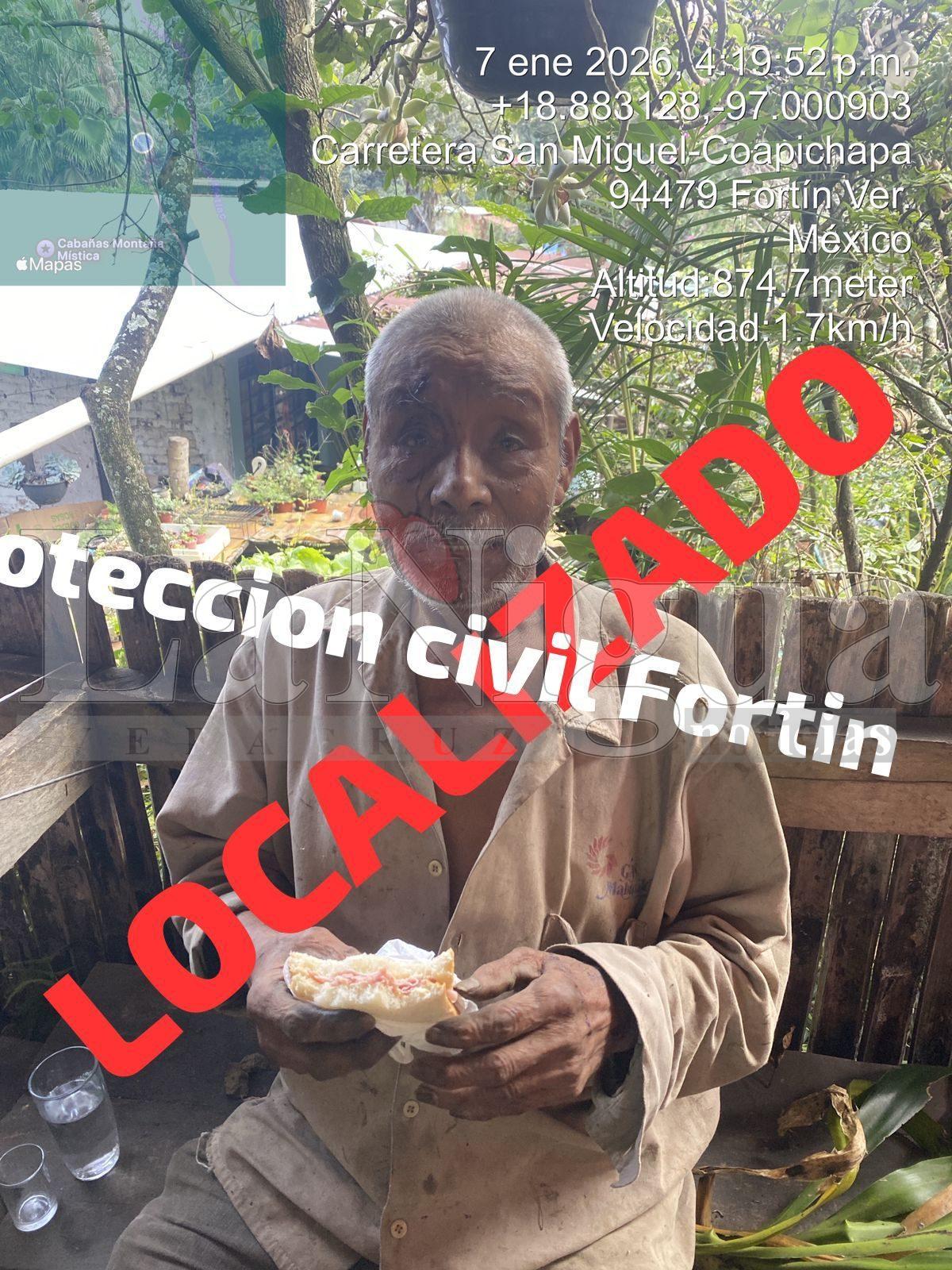 Fortín, Ver.— Luego de varias horas de intensa búsqueda, autoridades municipales confirmaron la localización con vida de Leonardo Romero Hernández, adulto mayor de 83 años de edad que había sido reportado como extraviado desde la mañana del martes.