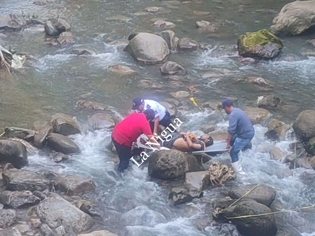 Tras muchos trabajos lograron sacar el cuerpo del masculino, el cuál vestia pantalón de mezclilla azul con playera gris y tenis color vino.