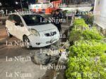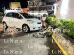 El vehículo fue asegurado y enviado al mesón local de grúas Monzalvo mientras aparece la conductora y pague los daños ocasionados.