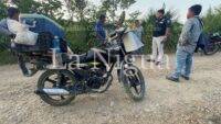 La frágil unidad de la marca Italika, Ft125, de color negra con amarillo, terminó con severos daños materiales, así como el auto compacto.
