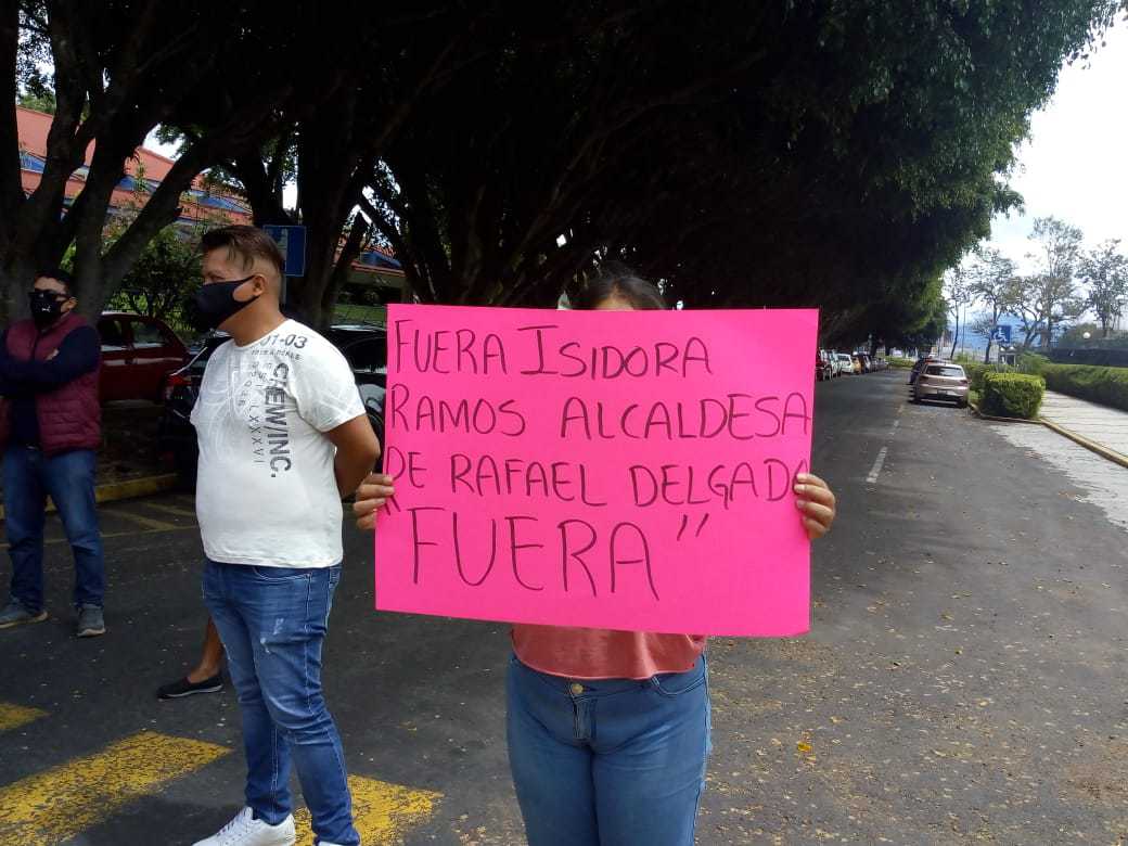 Un pequeño grupo de ciudadanos de la localidad de Jalapilla del municipio de Rafael Delgado, se encuentra manifestándose en las afueras del palacio legislativo ubicado en la calle de Encanto de esta ciudad de Xalapa, vienen a denunciar todas las anomalías que está cometiendo la presidenta municipal. Isidora Antonio Ramos, en contra de la población.