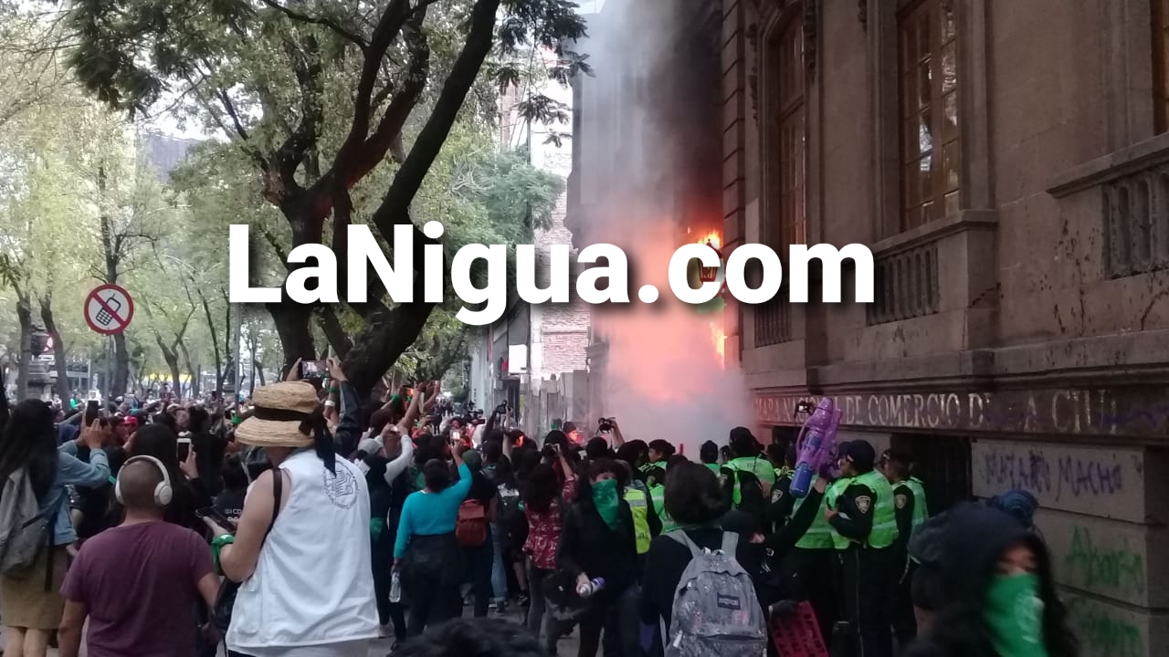 * Entre los daños se encuentra una puerta quemada, vidrios rotos en estaciones del Metrobús y pintas en diversos comercios de las calles de avenida Juárez y 5 de Mayo.