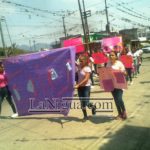Como se había reportado, las estudiantes de este plantel desde muy temprana hora recibieron una plática por parte de la psicóloga del USAER y más tarde salieron a las calles para marchar portando pancartas con temas alusivos al día de la mujer, acompañadas por maestros, el director y subdirector de esta institución.