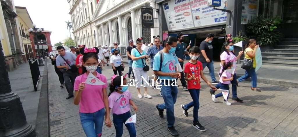 Jóvenes junto con sus padres marcharon por la avenida 1 y pasaron por la calle 4, la avenida 3 y la calle 5 para terminar en el parque 21 de Mayo.