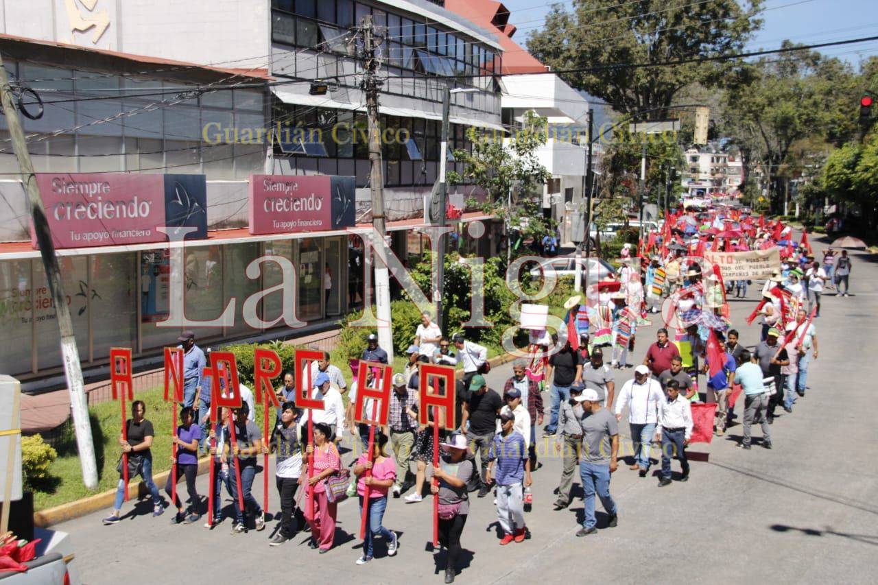 Los antorchistas portaban en sus manos cartulinas con varias consignas a su petición a pesar del tremendo sol que cayó esta mañana eso no impidió que salieran a caminar y marchar por las principales calles de esta ciudad como Manuel Ávila Camacho, Zaragoza, Zamora, Juárez, Enríquez y Revolución.