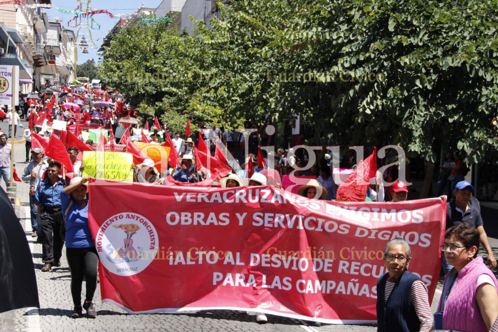 Xalapa, Ver.- Como ya estaba anunciado de hace unos par de días que este día 4 de septiembre saldrían a las calles a iniciar una marcha por parte de integrantes del movimiento de Antorchista y cumplieron con su palabra este día del lunes donde más de tres mil antorchistas del norte , centro y sur del estado, marcharon por las principales calles de Xalapa denunciando la corrupción de Gobierno del Estado de Veracruz, y el desvío de recursos hacia las campañas anticipadas de las “corcholatas” morenistas. Al frente de la manifestación iba Samuel Aguirre Ochoa, líder histórico del antorchismo veracruzano.