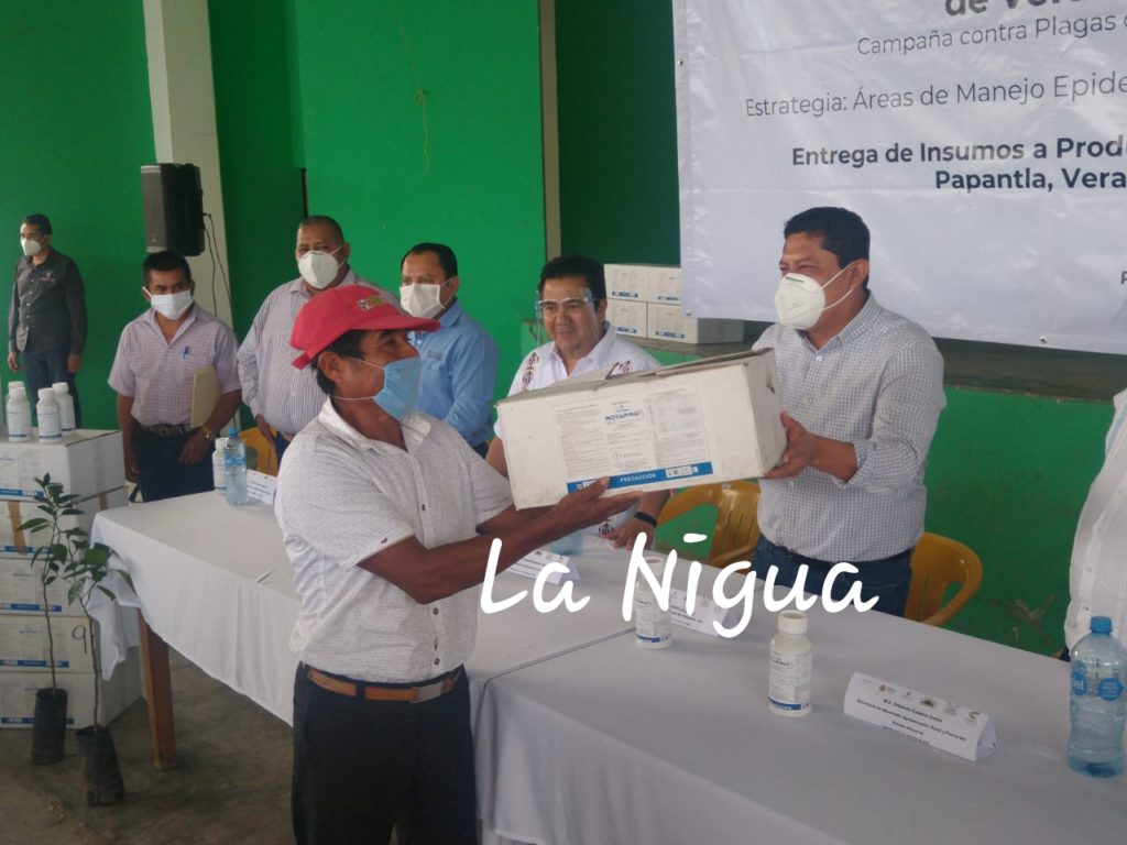 LLANOS DE SAN LORENZO, MPIO.DE PAPANTLA, VER.- Con la presencia del MC Eduardo Cadena Cerón quien es Secretario de Desarrollo Agropecuario Rural y Pesca del Gobierno del Estado del diputado local Erick Domínguez Vázquez, del alcalde Mariano Romero González, Rogelio Sarmiento Tejeda quien es Coordinador de la Lucha contra plagas de los Cítricos, Ricardo Hernandez Campos quien es Presidente del Comité Estatal de Sanidad Vegetal así como productores de esta región del Totonacapan.