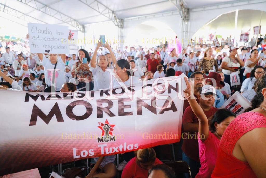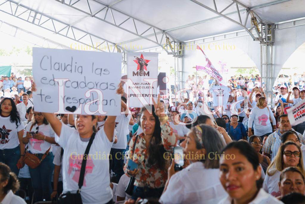 Con porras y principalmente mensajes de apoyo, el magisterio demostró que está listo para acompañar a una mujer en su carrera por la continuidad de la Cuarta Transformación.