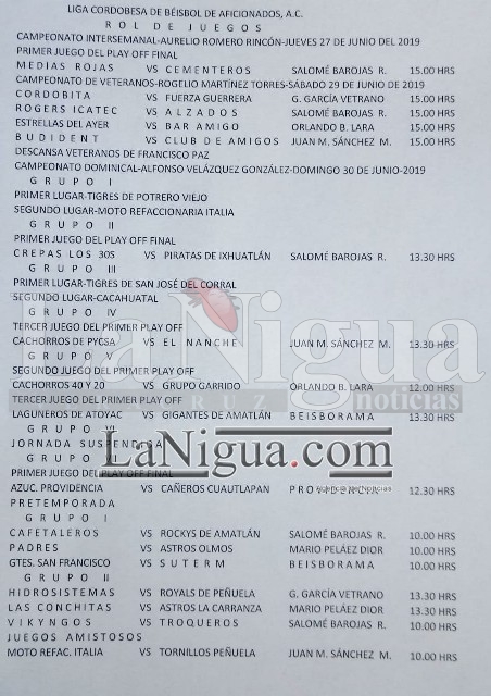Llegó la hora, éste jueves se pondrá en marcha el playoff final del beisbol intersemanal de la Liga Cordobesa, con las dos mejores novenas de la temporada regular, Medias Blancas de Anuar Hazouri y Cementeros.
