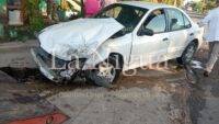 Tantoyuca, Ver.- Una pesada unidad estuvo a punto de matar a un galeno, según los reportes un tracto camión invadió carril y embistió al frágil vehículo, dejándolo todo desecho de la parte frontal de la unidad.