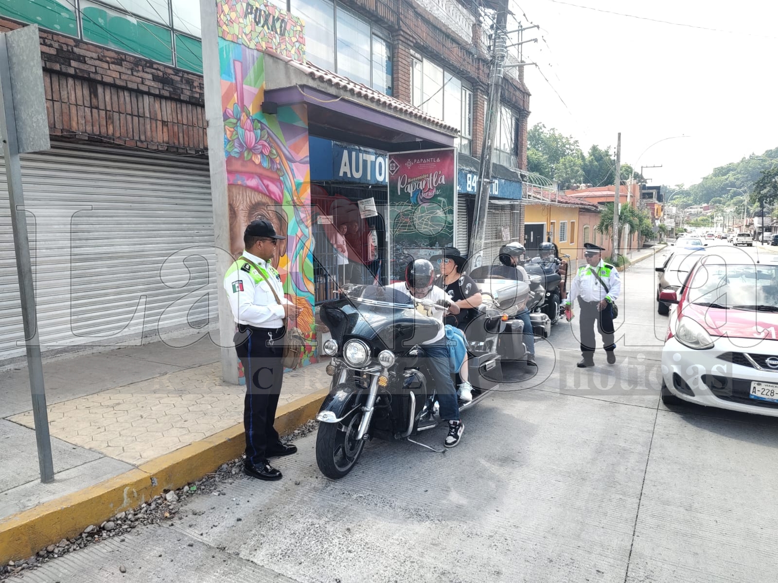 PAPANTLA, VER.- (Agosto 31 del 2024) Ante el aumento de señalamientos, sobre la participación de motociclistas en faltas a los reglamentos de transito y vialidad asi como diversos actos delictivos; la delegación de Tránsitoen coordinación con la policía estatal, están a efecto una serie de operativos de revisión en diversos puntos de esta cabecera municipal.