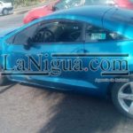 Al llegar al libramiento se impactó contra un auto Mitsubishi Eclipse color azul, cuyo conductor hizo corte de circulación. Tras la colisión los jóvenes salieron proyectados contra el pavimento resultando lesionados.