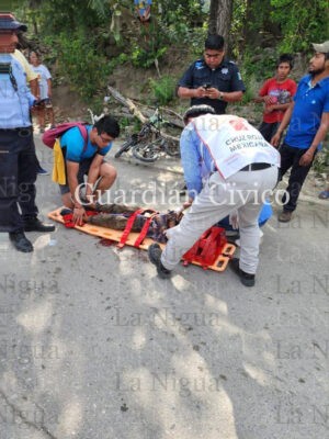 El menor, quien dijo llamarse Domingo “N”, de 11 años de edad, originario de Lindero Tametate, resultó con una herida en el cráneo y golpes en varias partes de su cuerpo tras el accidente.