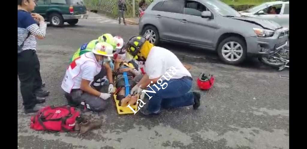 Córdoba, Ver.- Un joven motociclista resultó herido durante la tarde de este miércoles, luego de impactarse contra una camioneta Mitsubishi la cual era conducida por una mujer, debido a que uno de los dos conductores al no respetar la luz del semáforo, ocasionaron el accidente justo en el cruce del distribuidor vial de El Diamante y el bulevar Tratados de Córdoba.