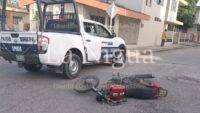 Naranjos-Amatlán, Ver.- Un motociclista fue embestido por un vehículo, cuyo conductor en lugar de auxiliarlo de dió cobardemente a la fuga, en hechos ocurridos el lunes alrededor de las 18:00 horas en la intersección de las calles General Prim y Francisco González Bocanegra de la colonia Progreso.