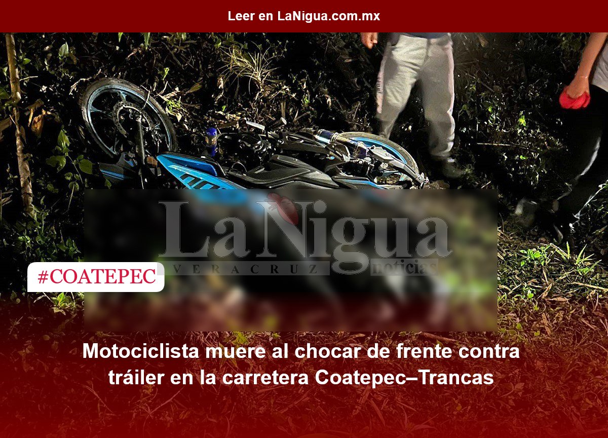 Coatepec, Veracruz, 8 de diciembre de 2025.– Un joven de aproximadamente 20 años perdió la vida la noche de este domingo tras impactarse de frente contra un tráiler de carga en la carretera Coatepec–Trancas, en el tramo entre Alborada de Emiliano Zapata y la localidad Costa Rica (Casa Amarilla).