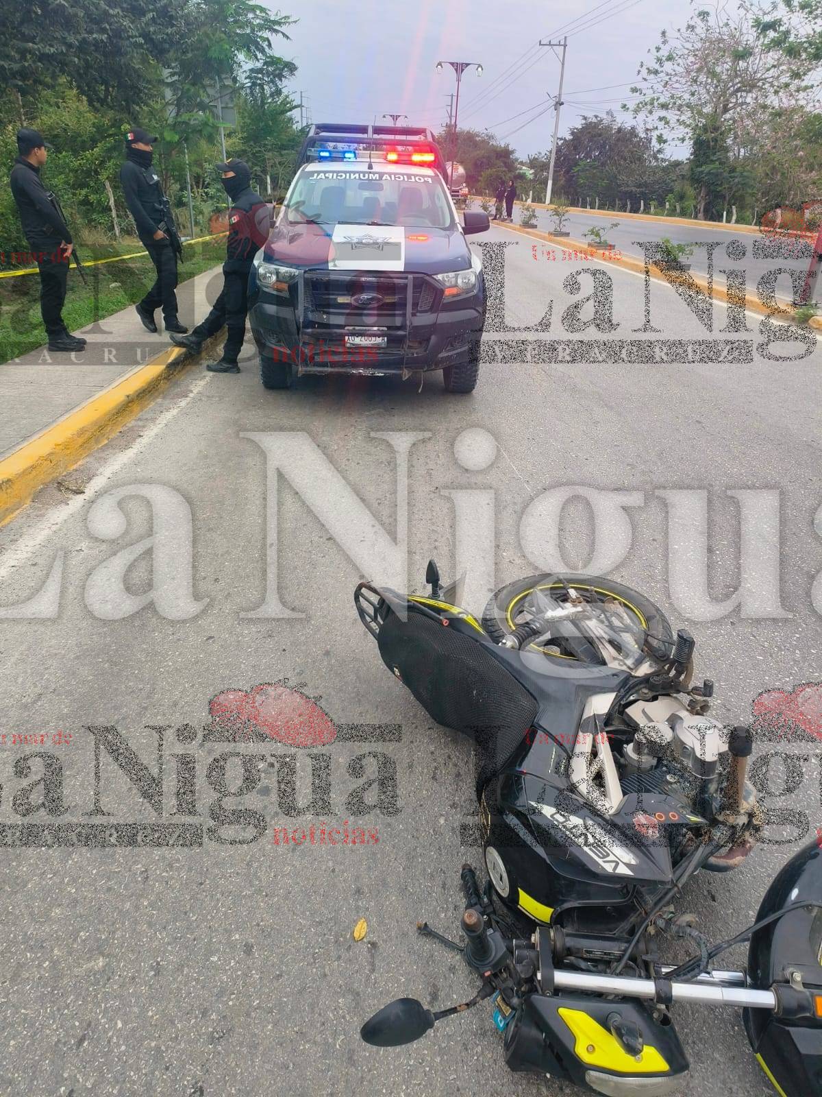 Pueblo Viejo, Ver.- Joven motociclista murió, tras chocar contra una banqueta en transitado bulevar.