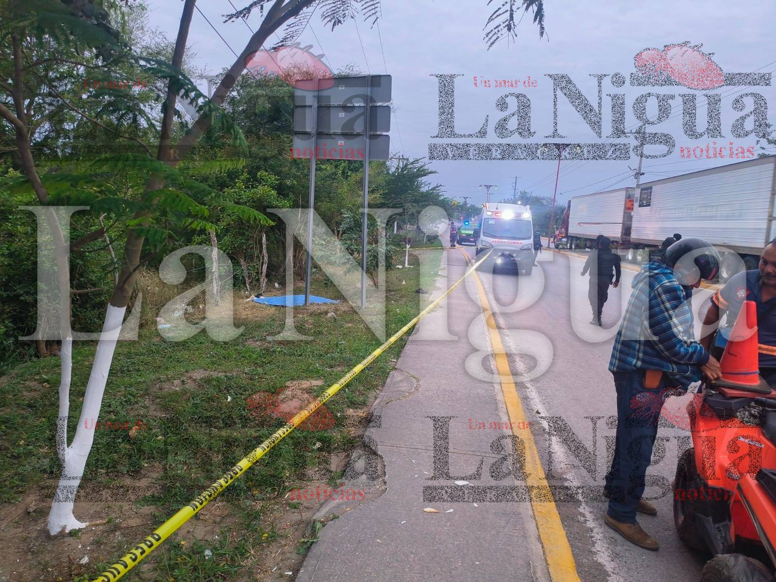 En ese punto falleció de forma instantánea un joven de aproximadamente 23 años de edad, el cual se desplazaba en una motocicleta marca Vento color negro con verde limón.