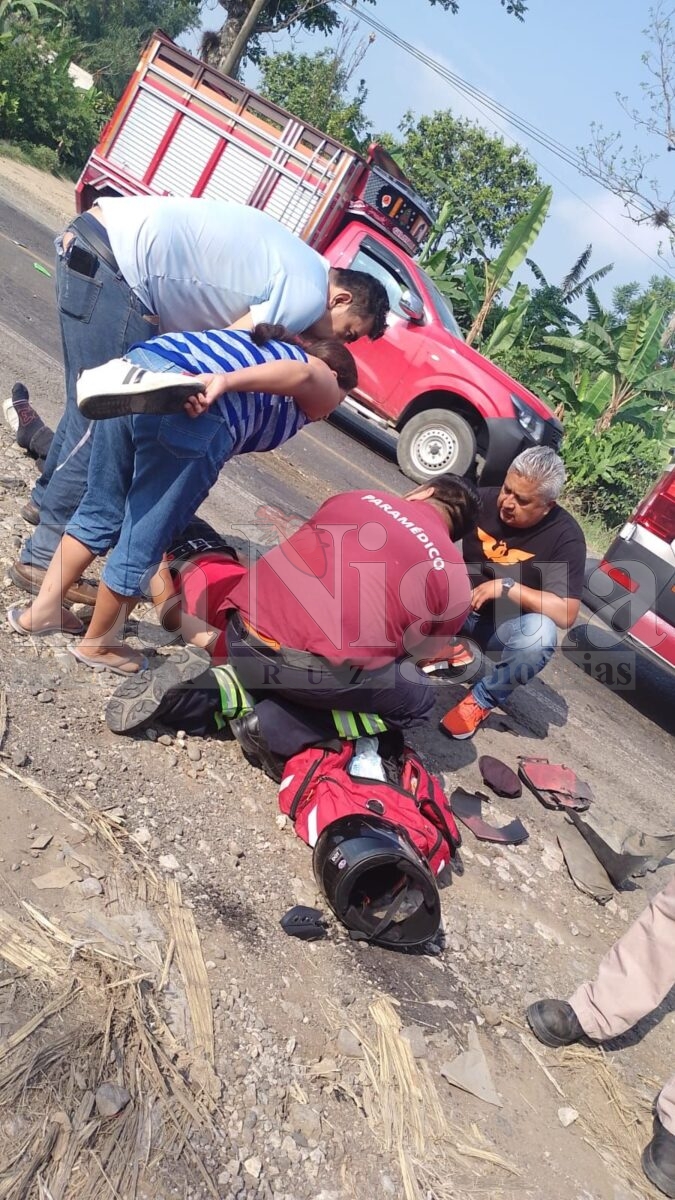 El accidente ocurrió cuando el motociclista, circulaba con dirección a Coscomatepec, sin embargo en la localidad de Monte Salas, el conductor de una camioneta pick up identificado como chatarrero de este mismo lugar, al momento de incorporarse a la carretera provocó un corte de circulación ocasionando el accidente para posteriormente darse la fuga no sin que antes se le cayera la placa XB-67-989 de su unidad por lo cual está plenamente identificado.