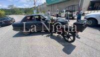 La motocicleta que conducía de la marca Vento, de color negra con amarillo, terminó incrustado en el vehículo tras el fuerte impacto.