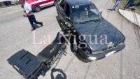 Un motociclista resultó lesionado tras chocar a exceso de velocidad contra un auto compacto en hechos ocurridos la mañana de este viernes.