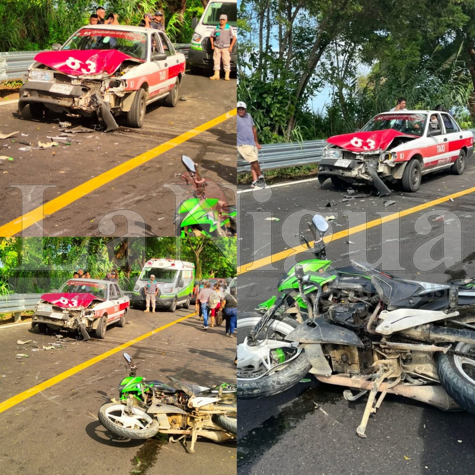El accidente ocurrió aproximadamente a las 16:00 horas, cuando el joven conductor de una motocicleta Italika F150 color verde manzana, identificado como Sergio N., habría invadido el carril contrario al intentar rebasar, lo que provocó el choque contra un taxi de Tecolutla con número económico 83 y placas de circulación oficiales, manejado por Manuel N., quien se dirigía de regreso al puerto turístico.