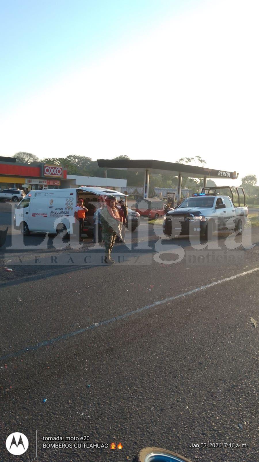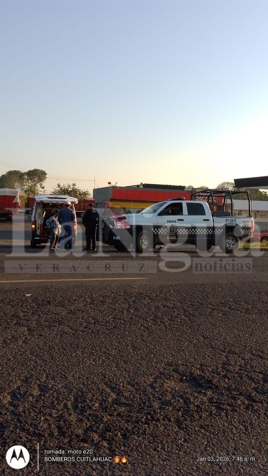 Al sitio acudieron elementos de la Secretaría de Marina, Policía Estatal, así como paramédicos del SAMUV de Yanga, quienes brindaron atención prehospitalaria al joven lesionado. Asimismo, Bomberos Regionales de Cuitláhuac apoyaron en las labores de auxilio y en el abanderamiento de la zona para evitar otro percance.