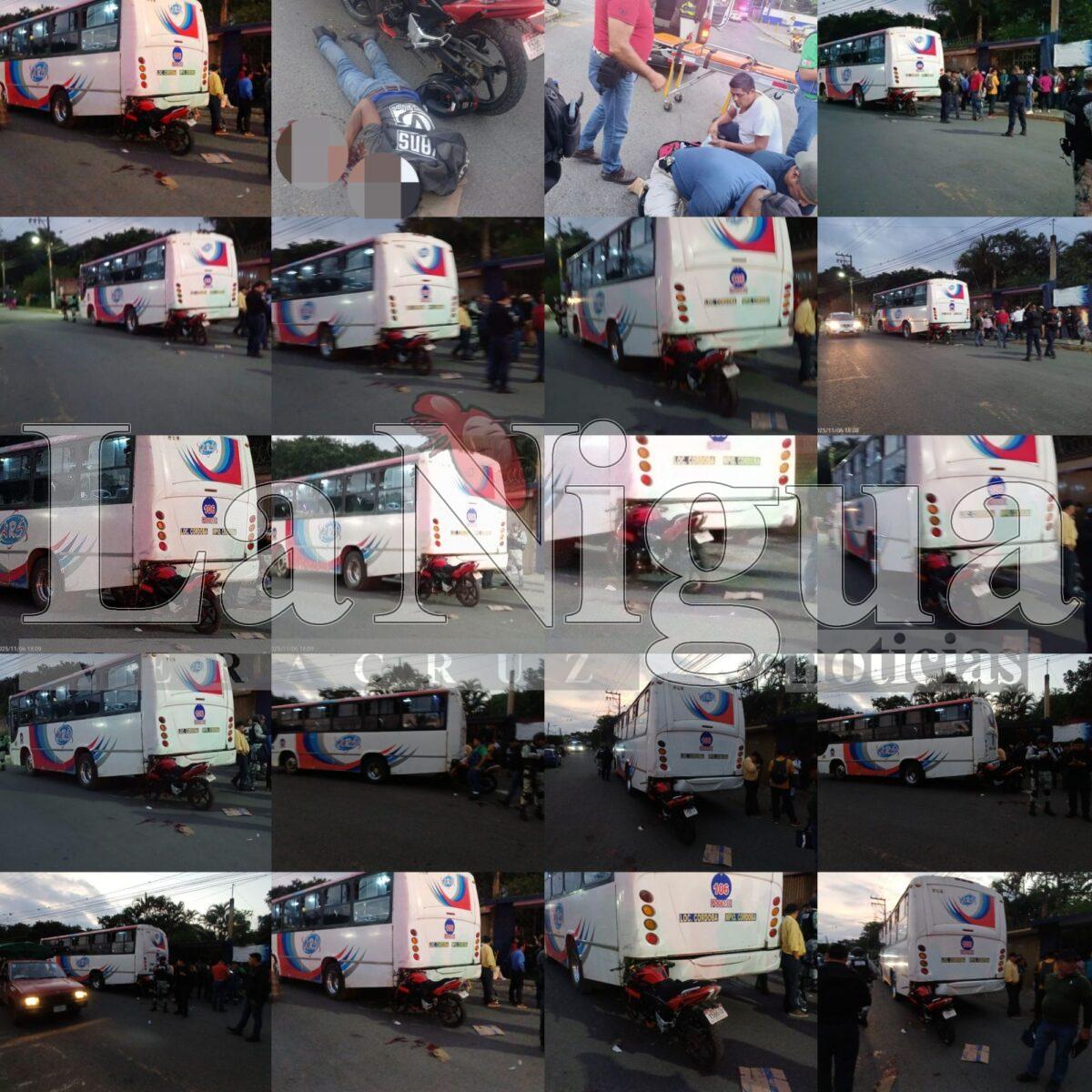 Amatlán, Ver.- Un joven motociclista identificado como Ronaldo René Miranda Hernández, de 18 años de edad resultó gravemente lesionado la tarde de este jueves tras impactarse contra la parte trasera de un autobús de la línea Autobuses Rápidos del Sureste, a la altura de la entrada al municipio de Amatlán de los Reyes, cerca de las instalaciones del Instituto Mexicano del Seguro Social (IMSS).