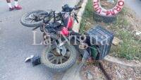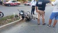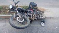 Tantoyuca, Ver.- Un aparatoso choque se efectuo sobre la Avenida Platón Sánchez, un motociclista quedó herido sobre la carretera, fue necesario que llegara una ambulancia de protección civil y los agentes de vialidad quienes aseguraron las dos unidades para deslindar responsabilidades tras este hecho de tránsito.