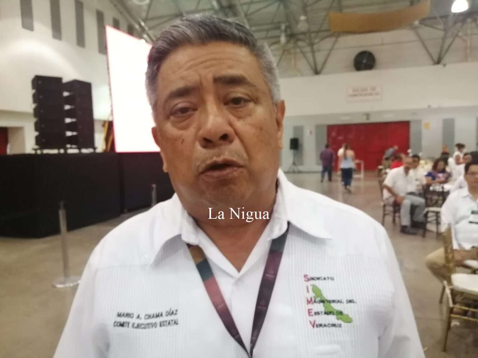 Xalapa, Ver.- El Secretario General del Sindicato Magisterial del Estado de Veracruz (SIMVE), Mario Antonio Chama Diaz, dijo, “Tenemos mucho que celebrar en primer lugar en cuestión de los pagos a los maestros y las maestras a su reconocimiento y su labor, en verdad el gobernador Cuitláhuac García Jiménez, los secretarios de SEV y SEFIPLAN, han cumplido ya que no vemos a maestros en las calles pidiendo que se les pague su salario como anteriores ocasiones, a su vez estamos preocupados por el anuncio del dia de ayer del aumento, que nos hubiera gustado un aumento más directo, no solamente para los maestros que ganen menos de 20 mil pesos, si no que ese aumento que se habla del 7.5 por ciento escalonado, nos hubiera gustado tal vez hubiera sido menos pero que fuera directo, realmente al salario, no nada más que ganan menos de 20 mil pesos sino de todos los maestros”.