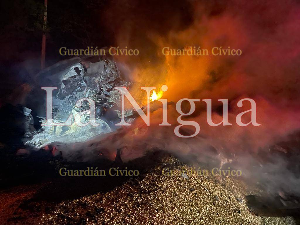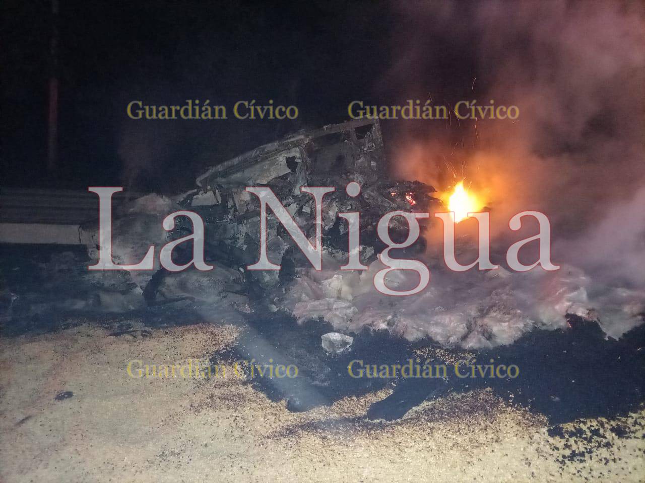 Corporaciones de rescate, indicaron que al interior de la unidad tipo caja seca y cargada con productos alimenticios quedó prensado el operador, quien lamentablemente perdió la vida, calcinado por el fuego que rápidamente consumió los vehículos.