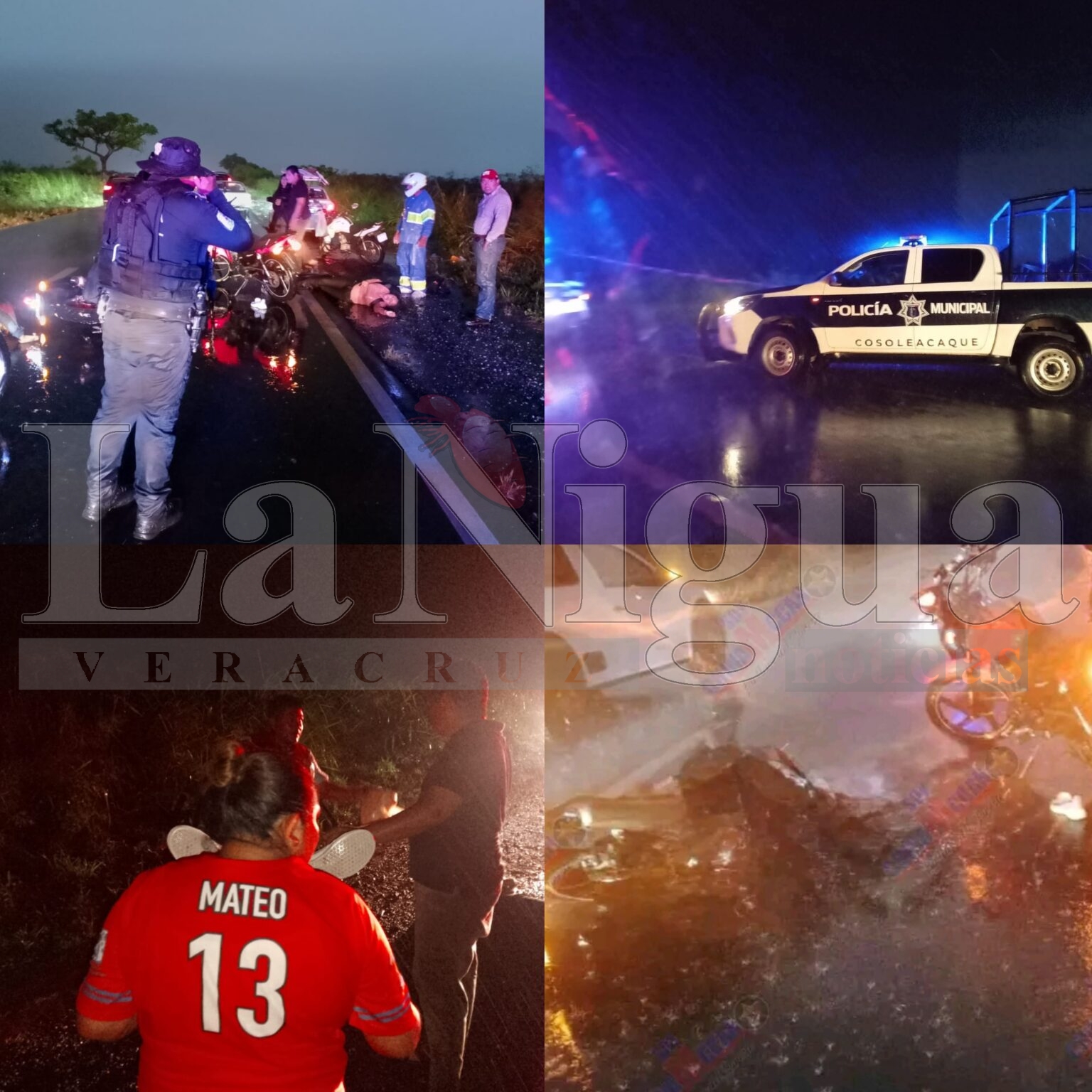 Uno de los motociclistas sobrevivió y relató que, tras el fuerte impacto sonoro, perdió el control de su unidad y, al recobrar la conciencia, encontró a sus compañeros ya sin vida. Elementos de Protección Civil de Cosoleacaque acudieron en medio de la tormenta para auxiliarlo y posteriormente trasladarlo al hospital general de Minatitlán.