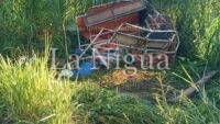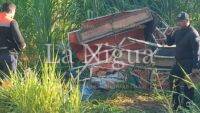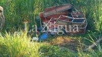 La camioneta de pasajeros quedó volcada a un costado de la cinta asfáltica desprendiéndose parte de la redila donde quedaron los cuerpos sin vida de tres personas.