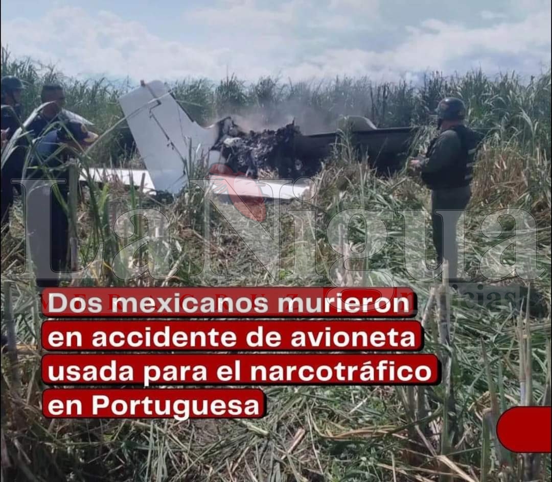 Dos mexicanos fallecieron en un accidente de avioneta que según informó el Gobierno colombiano, era utilizada para el tráfico de drogas y cayó en el estado Portuguesa.