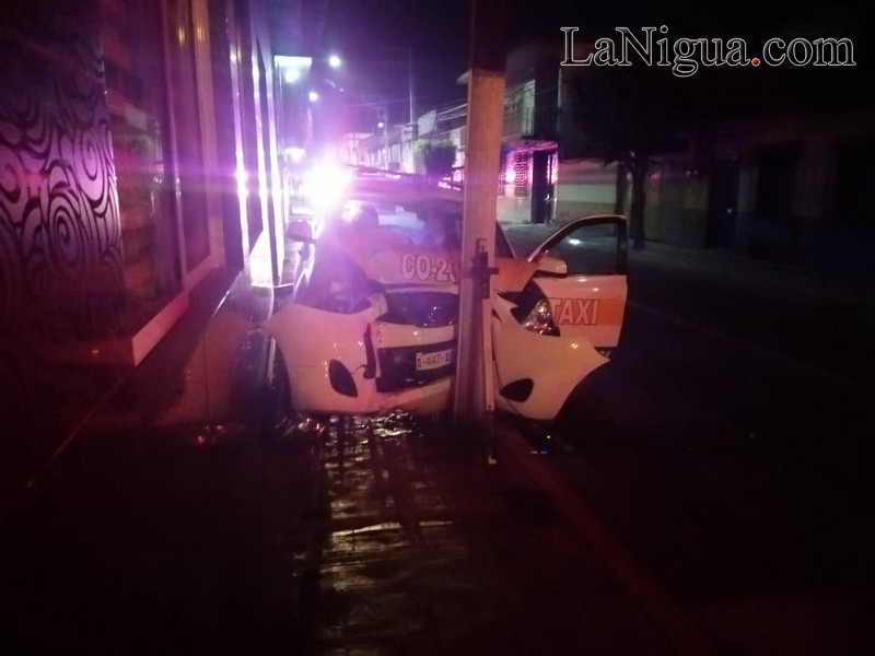 Córdoba.- Una mujer que conducía el taxi 2396 en estado de ebriedad así como a exceso de velocidad, derribó una luminaria y finalmente terminó impactándose contra un poste de telefonía, en la esquina de la calle 10 y avenida 3.