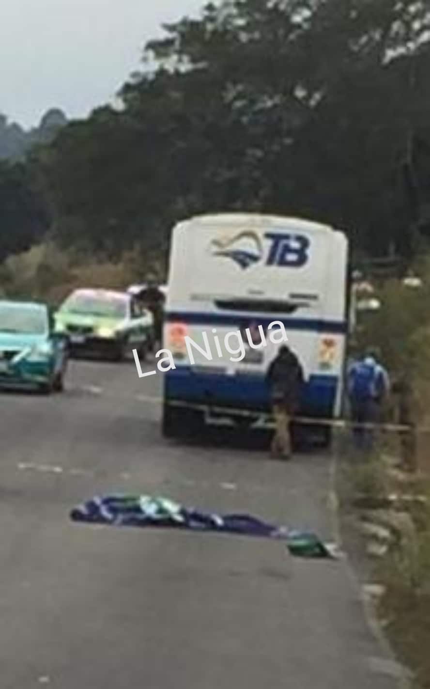 A decir de los pobladores la señora iba caminando sobre esta vía y el conductor de la unidad no se percató de la presencia de la señora, desgraciadamente la atropello y le dio muerte, el cuerpo de la señora quedó tirado en la carpeta alfastica.
