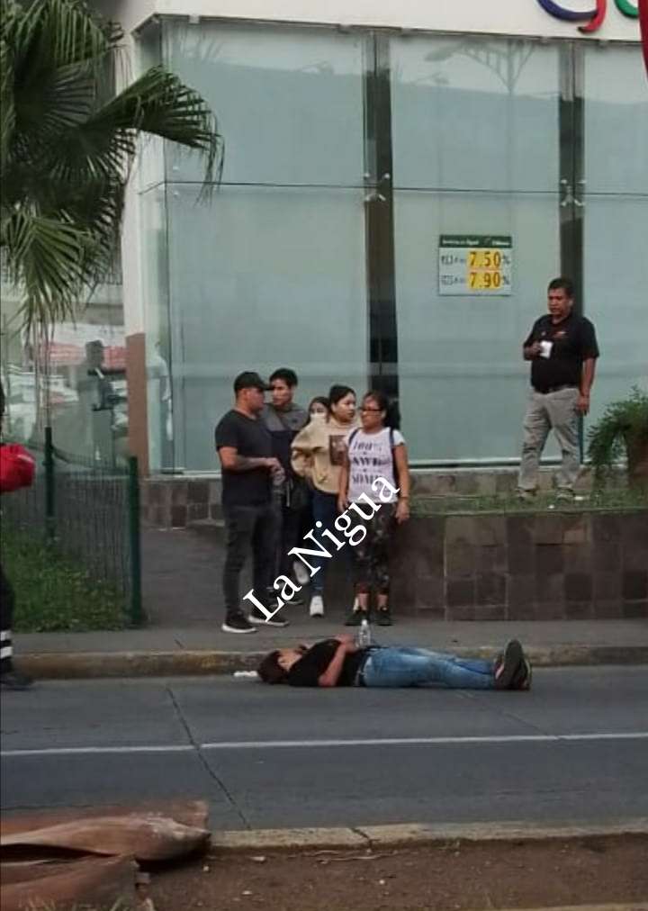 Tras el impacto la mujer quedó tendida en el asfalto siendo atendida por paramédicos, para después ser trasladada a un hospital.