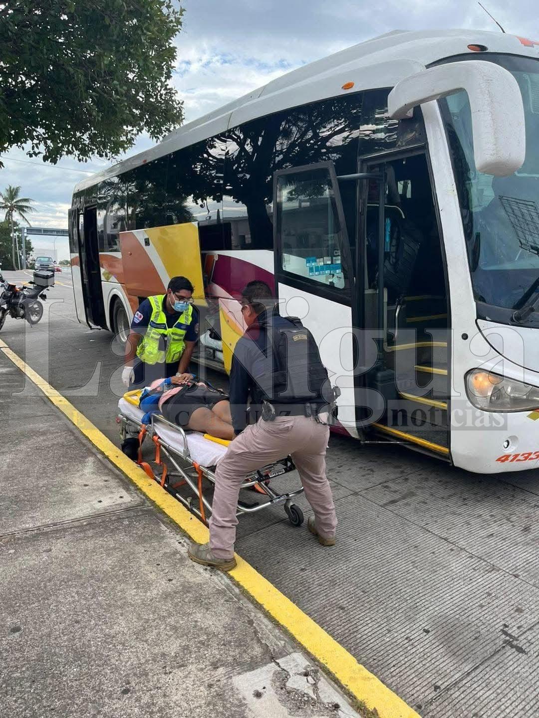 Elementos de atención médica interceptaron el autobús cerca de la plaza El Dorado, en Boca del Río, donde paramédicos brindaron valoración a la joven madre y a su hija recién nacida.