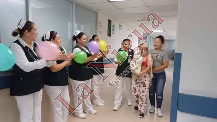 Pánuco.-La menor Aria “N” fue dada de alta y salió por su propio pie acompañada de sus padres, en medio de una gran ovación que le brindó el personal del HGR No. 6.